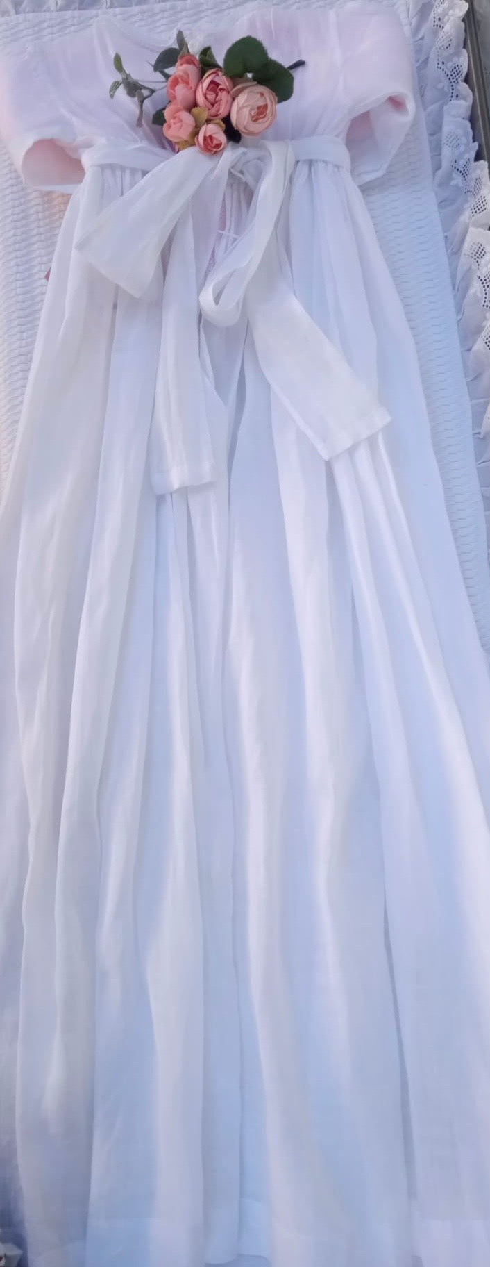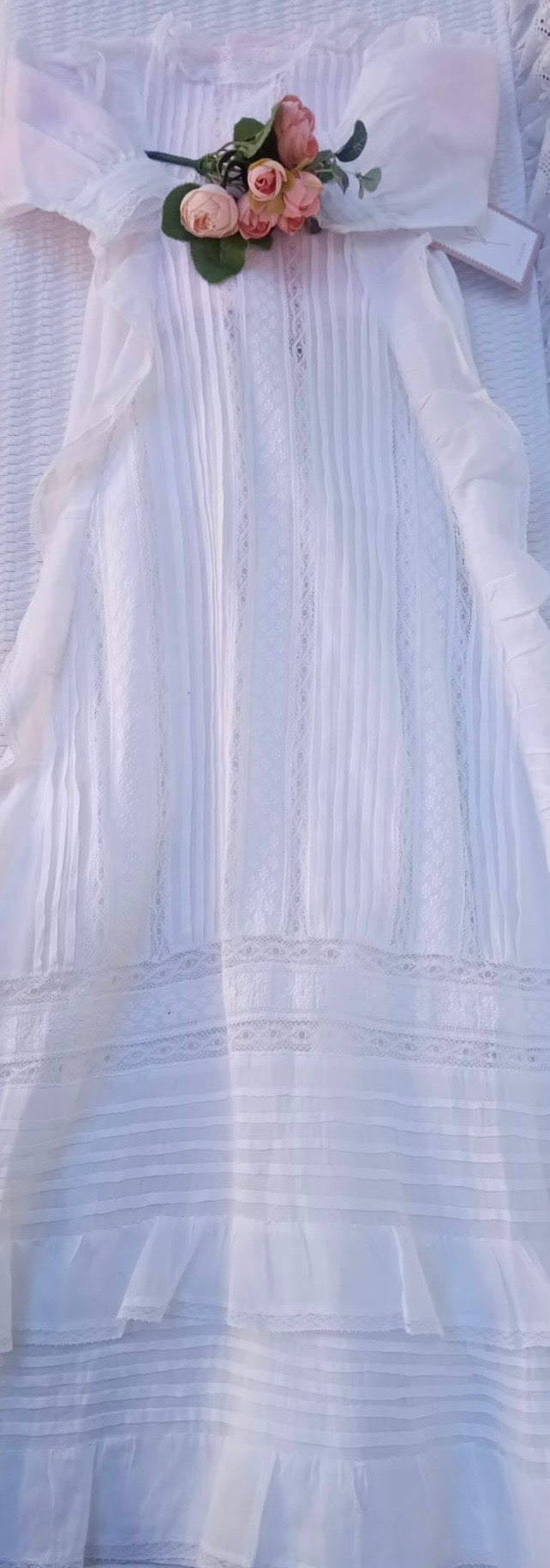 Baton confeccionado con tejido antiguo, con tira bordada y jaretas hecha a mano.