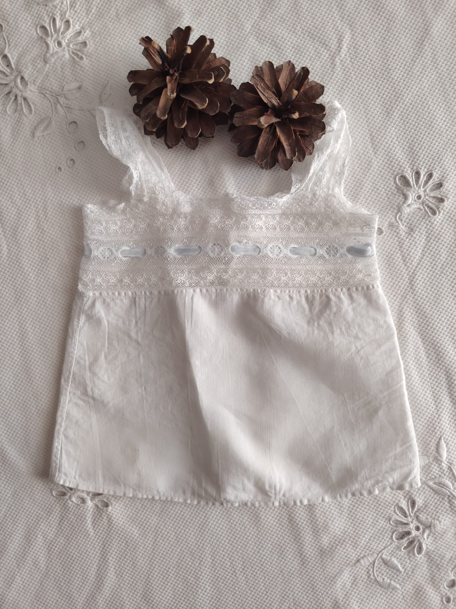 Camisita de primera postura de Batista y muestra de encaje con cinta celeste, posibilidad de cambiar color.