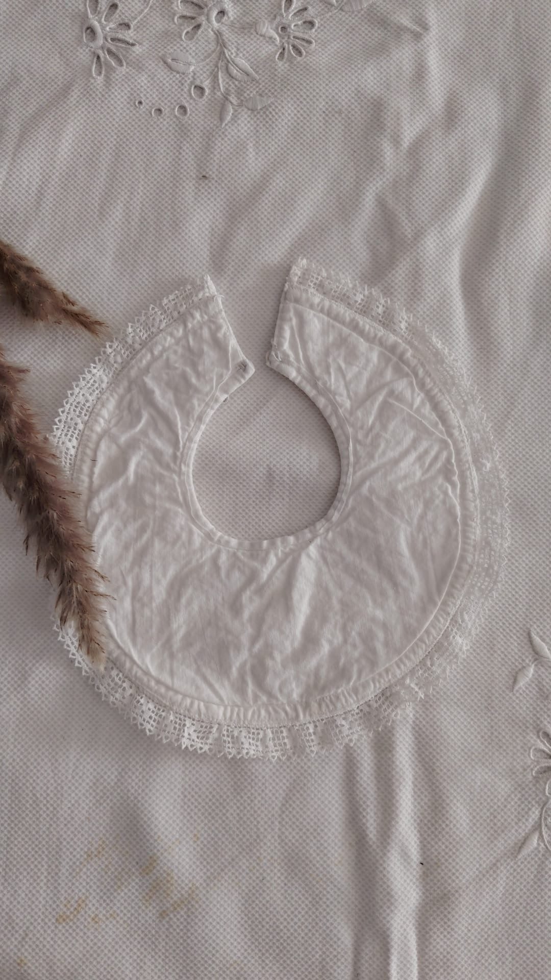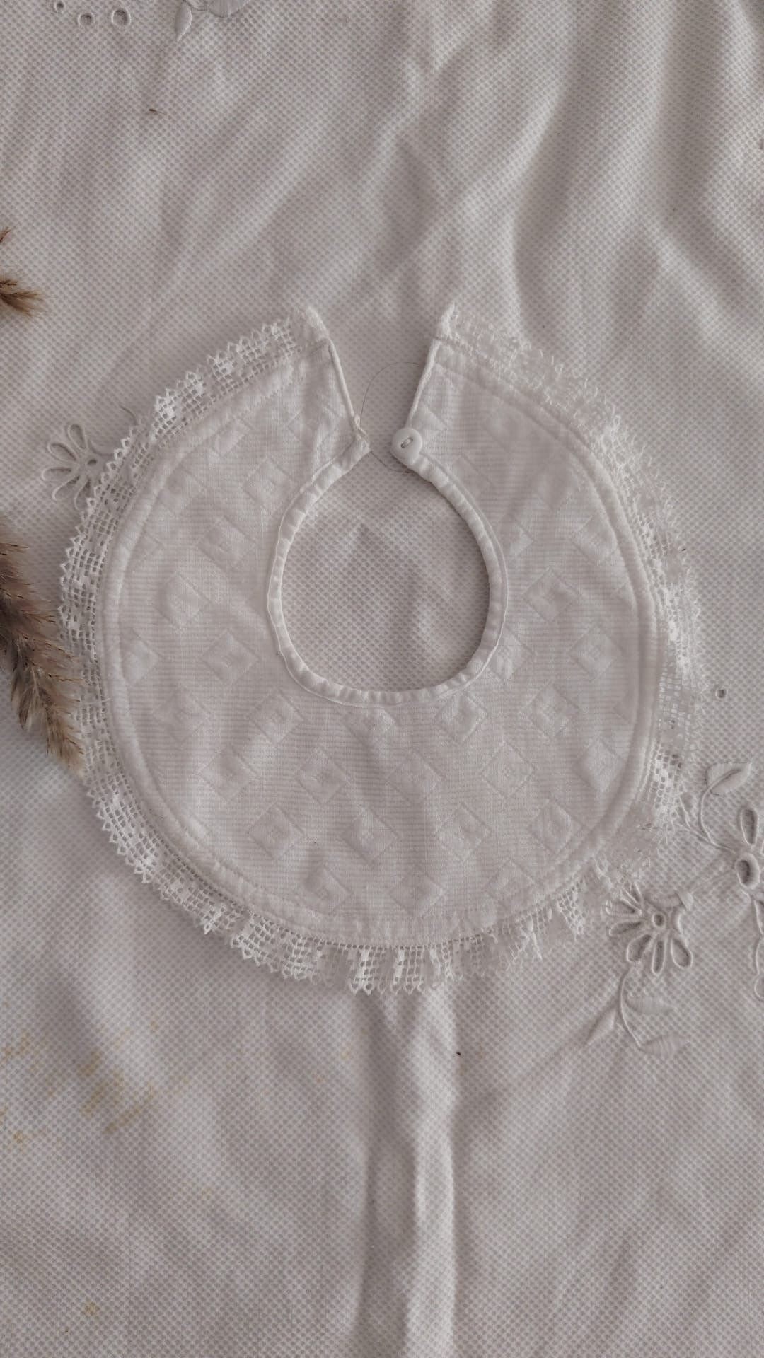 Babero redondo de piqué y encaje.