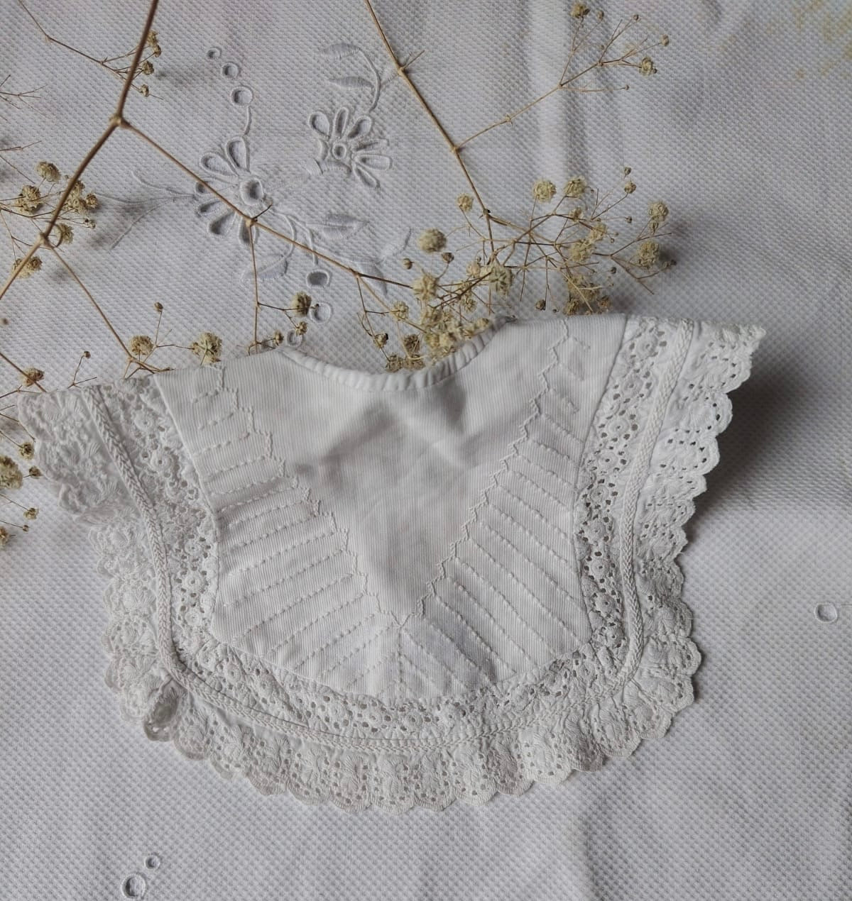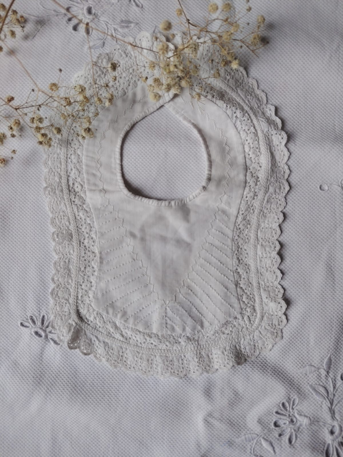 Babero antiguo bordado con tira bordada. No admite devolución.