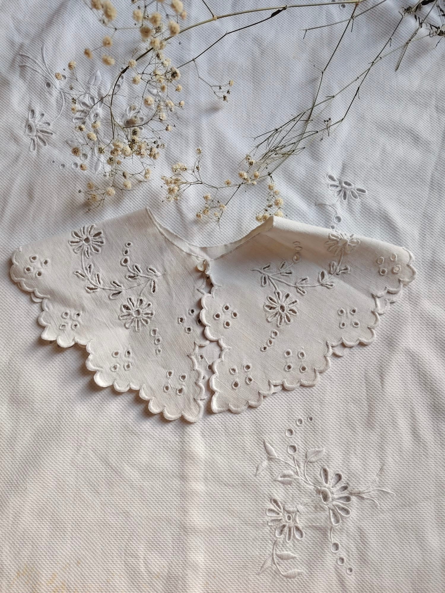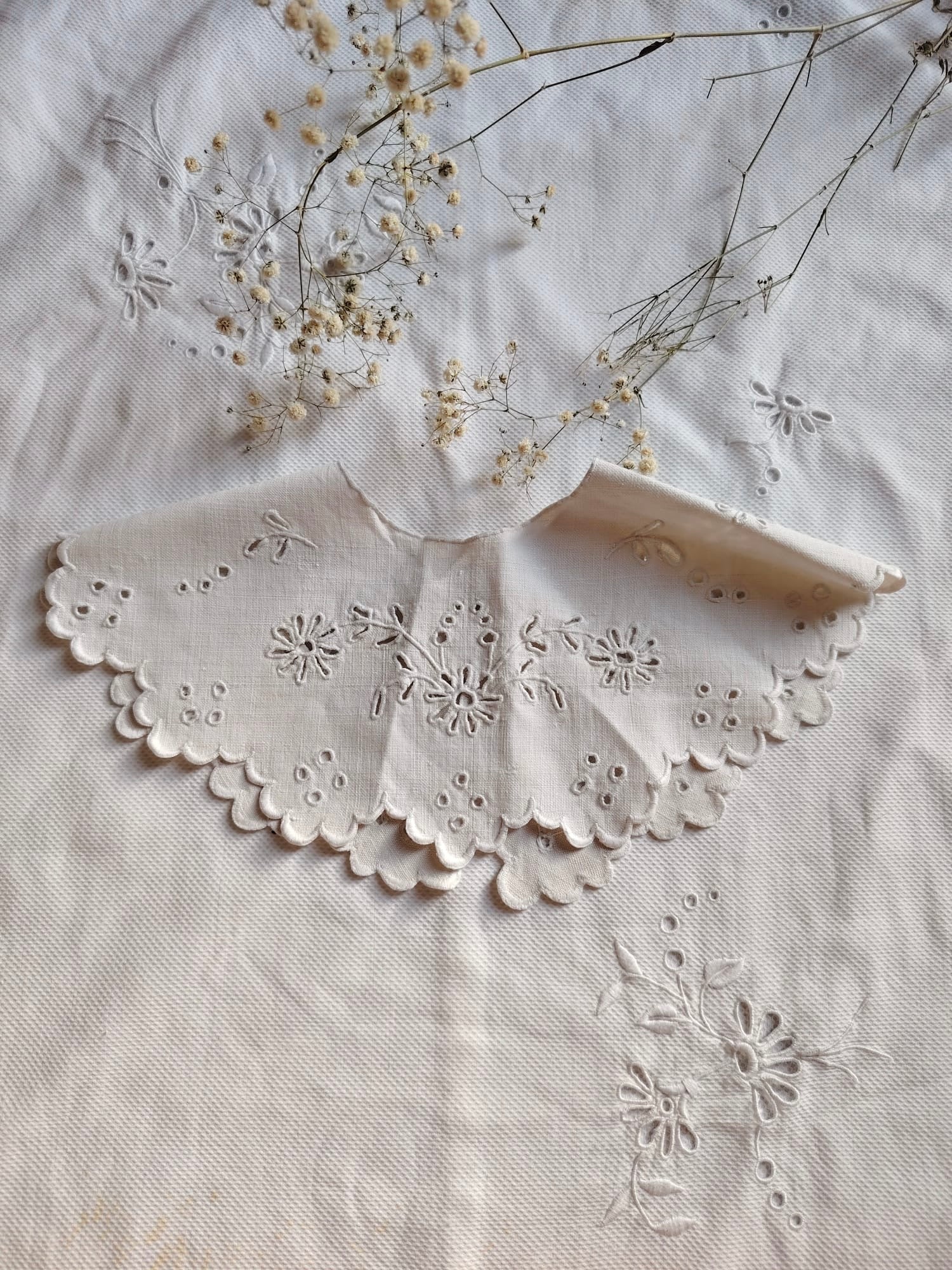 Cuello confeccionado con tejido antiguo,de lino bordado.