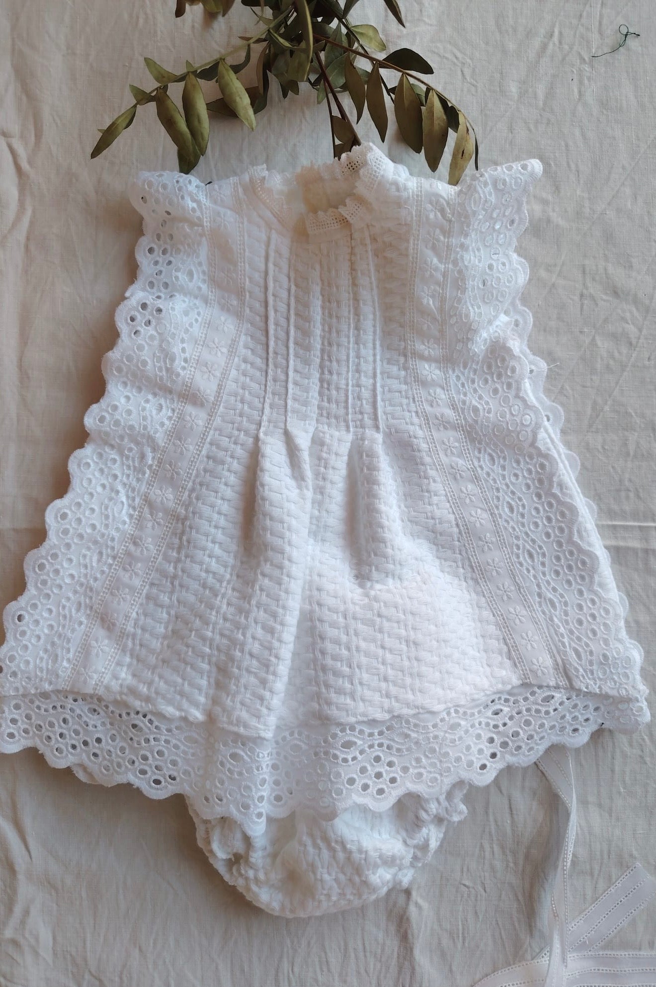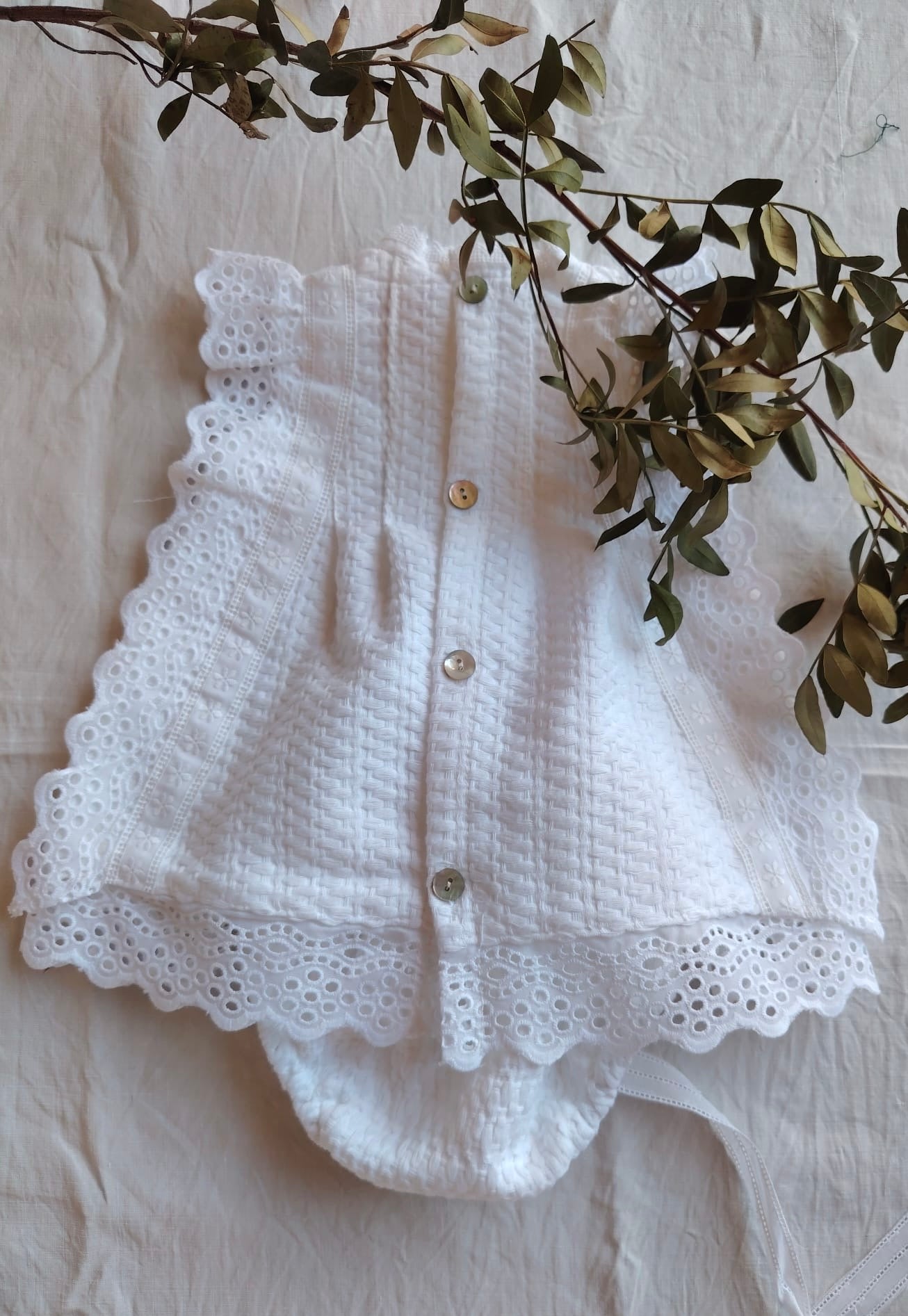 Jesusito de piqué, algodón 100% rematado en tira bordada y con cubre compañero.