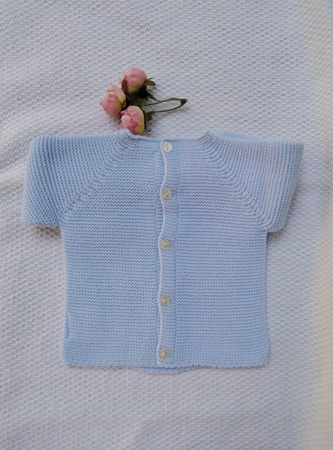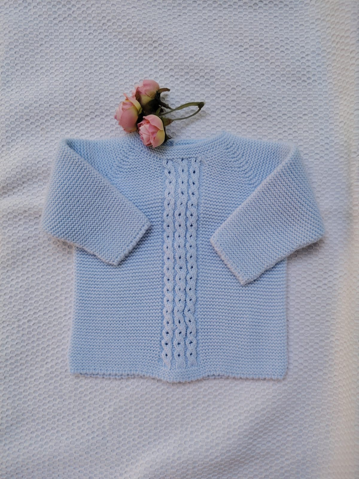 Jersey de lana celeste bebe, ochitos en el centro.