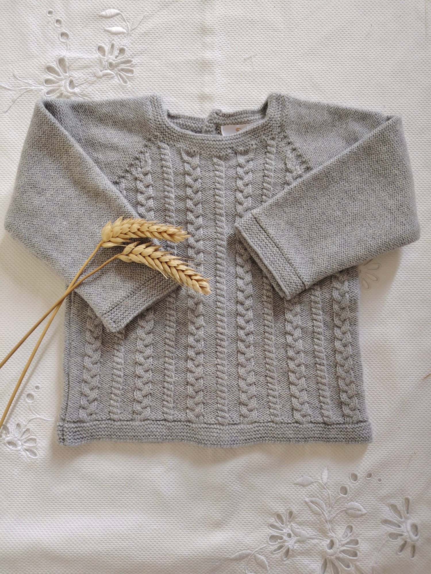 Jersey de lana ,cuerpo de ochitos,gris empolvado.