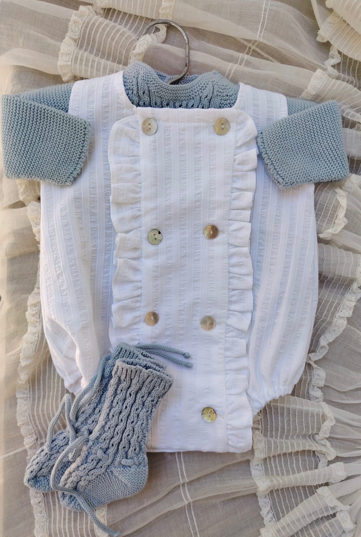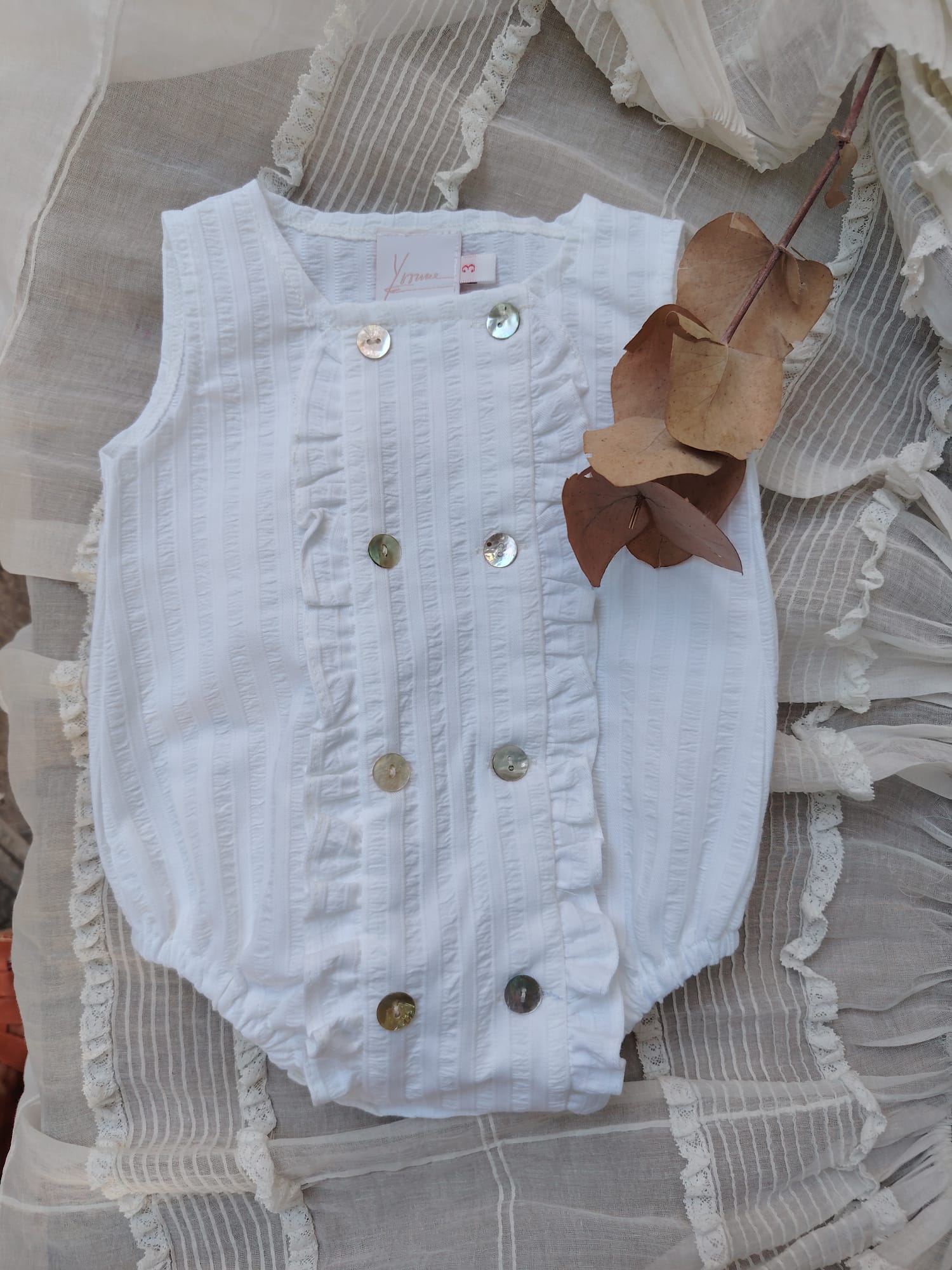 Pelele de batista plisada delantero con volantitos en la misma tela.