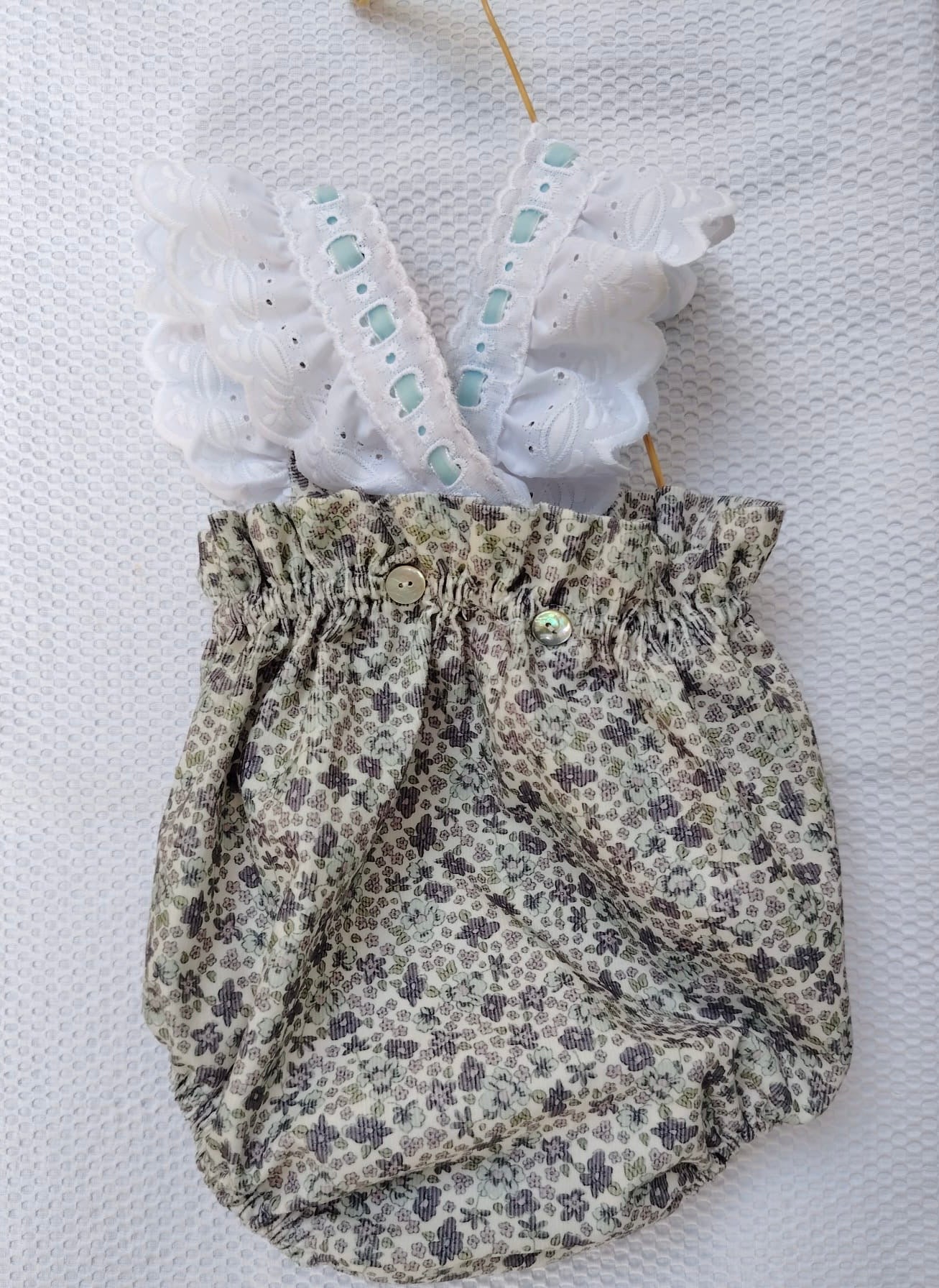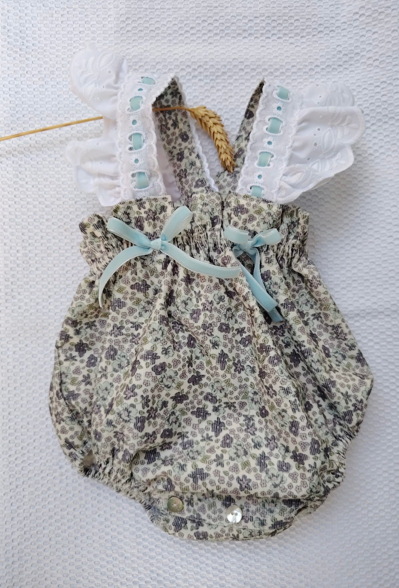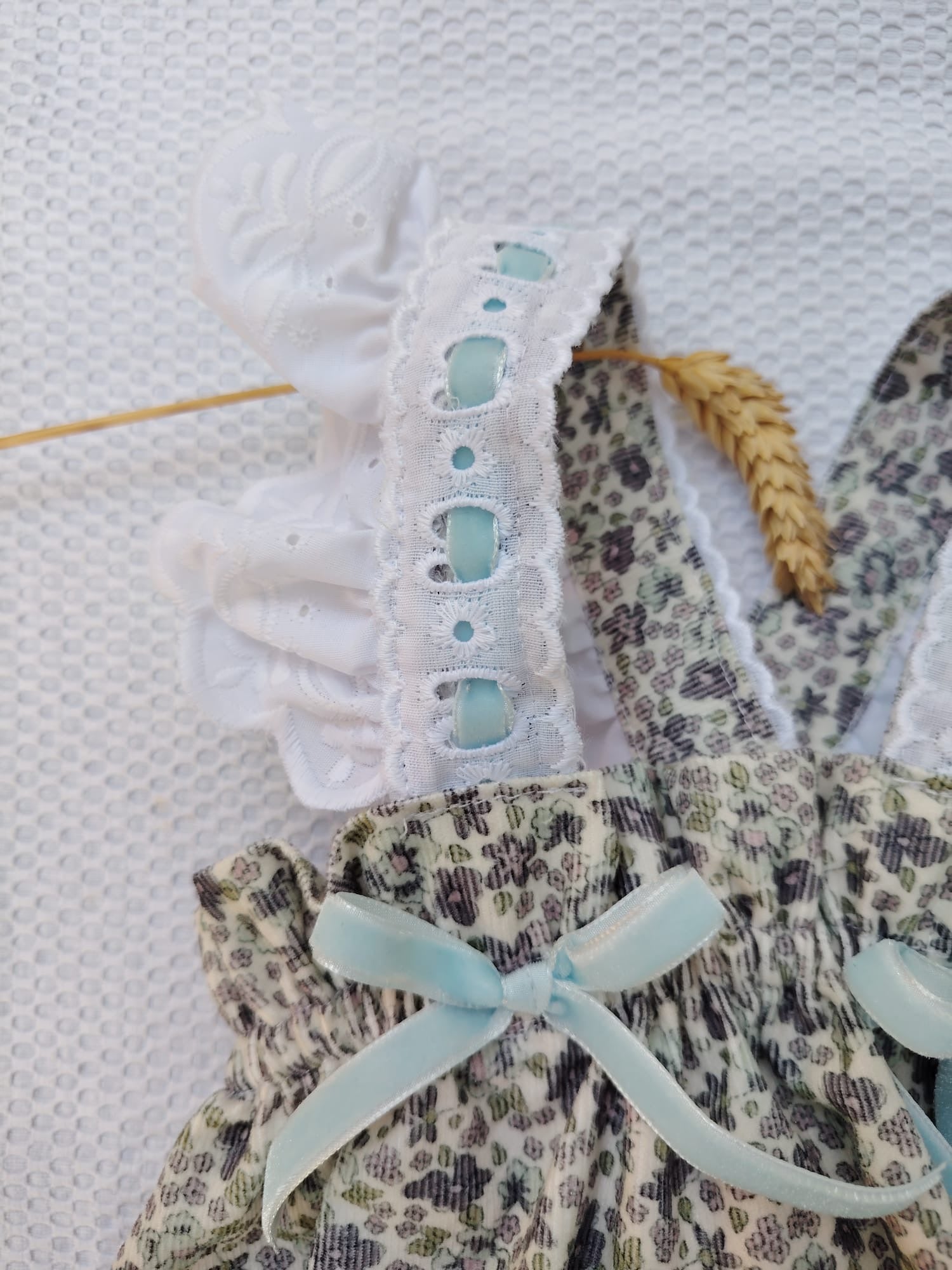 Ranita de micropana estampada en azul, tirantas de tira bordada.