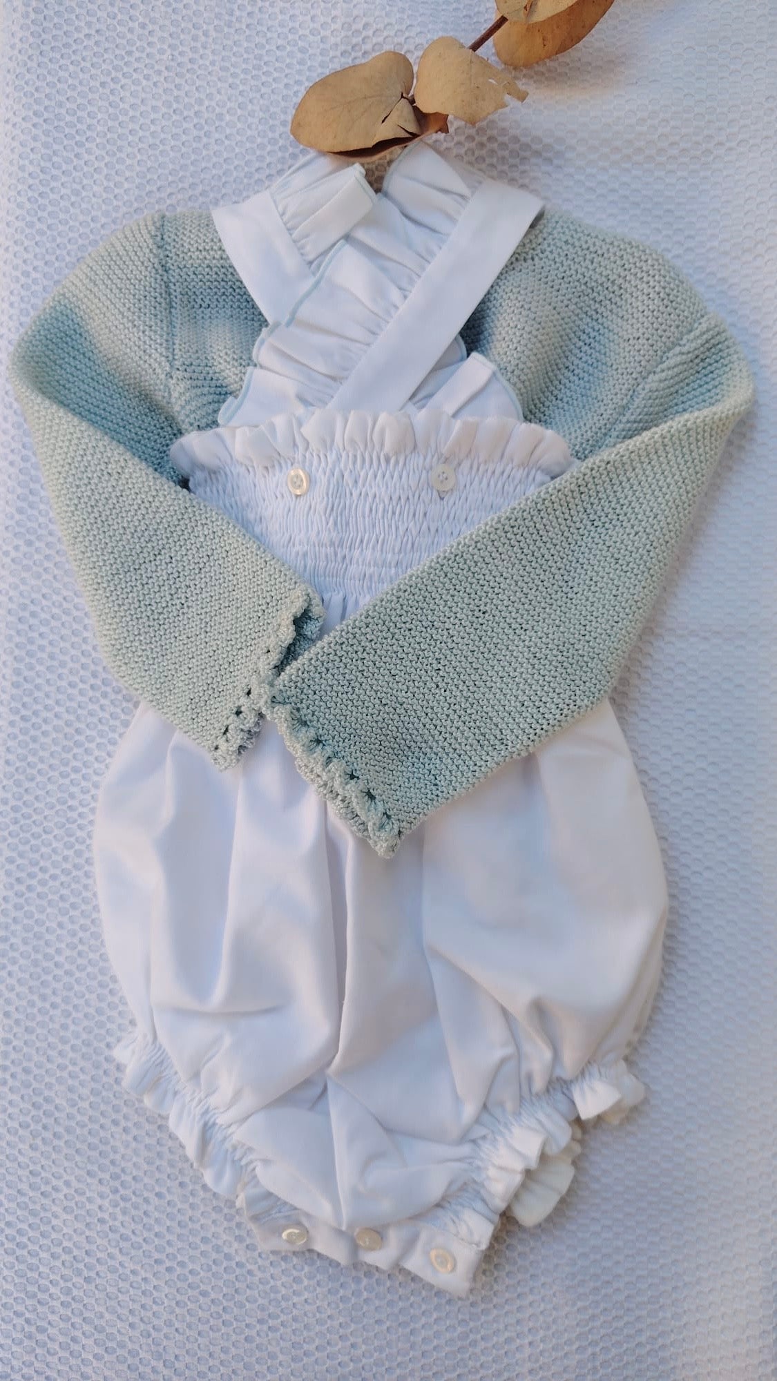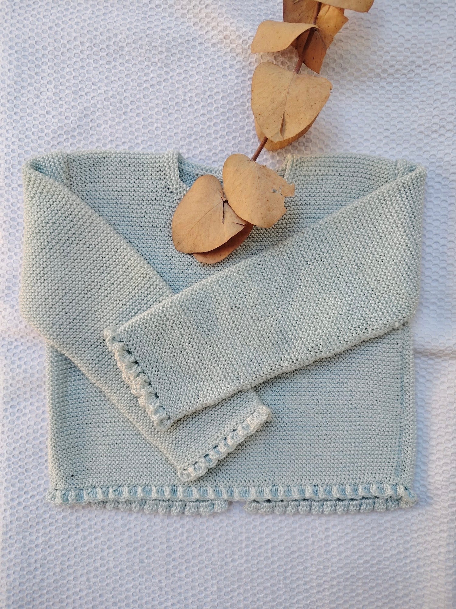Jersey celeste de algodón hecho a mano.
