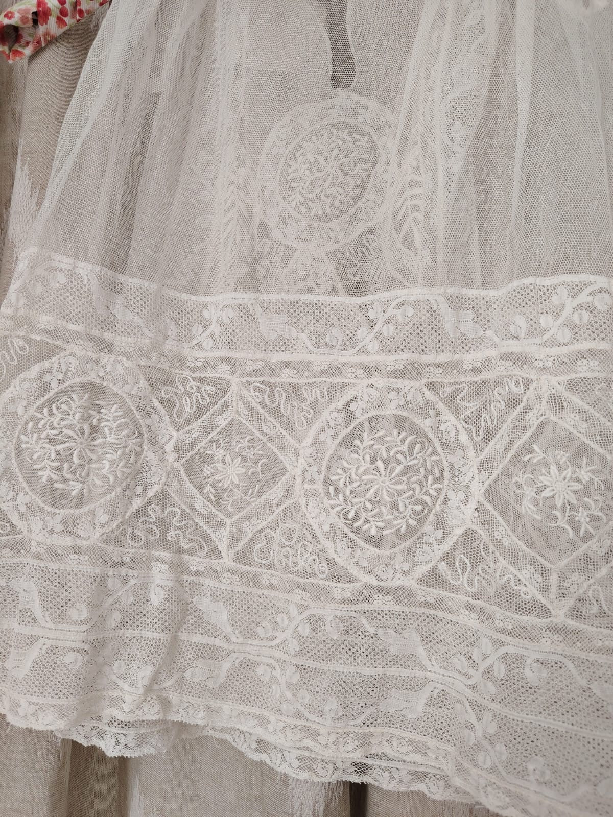 Vestido antiguo de tul bordado.