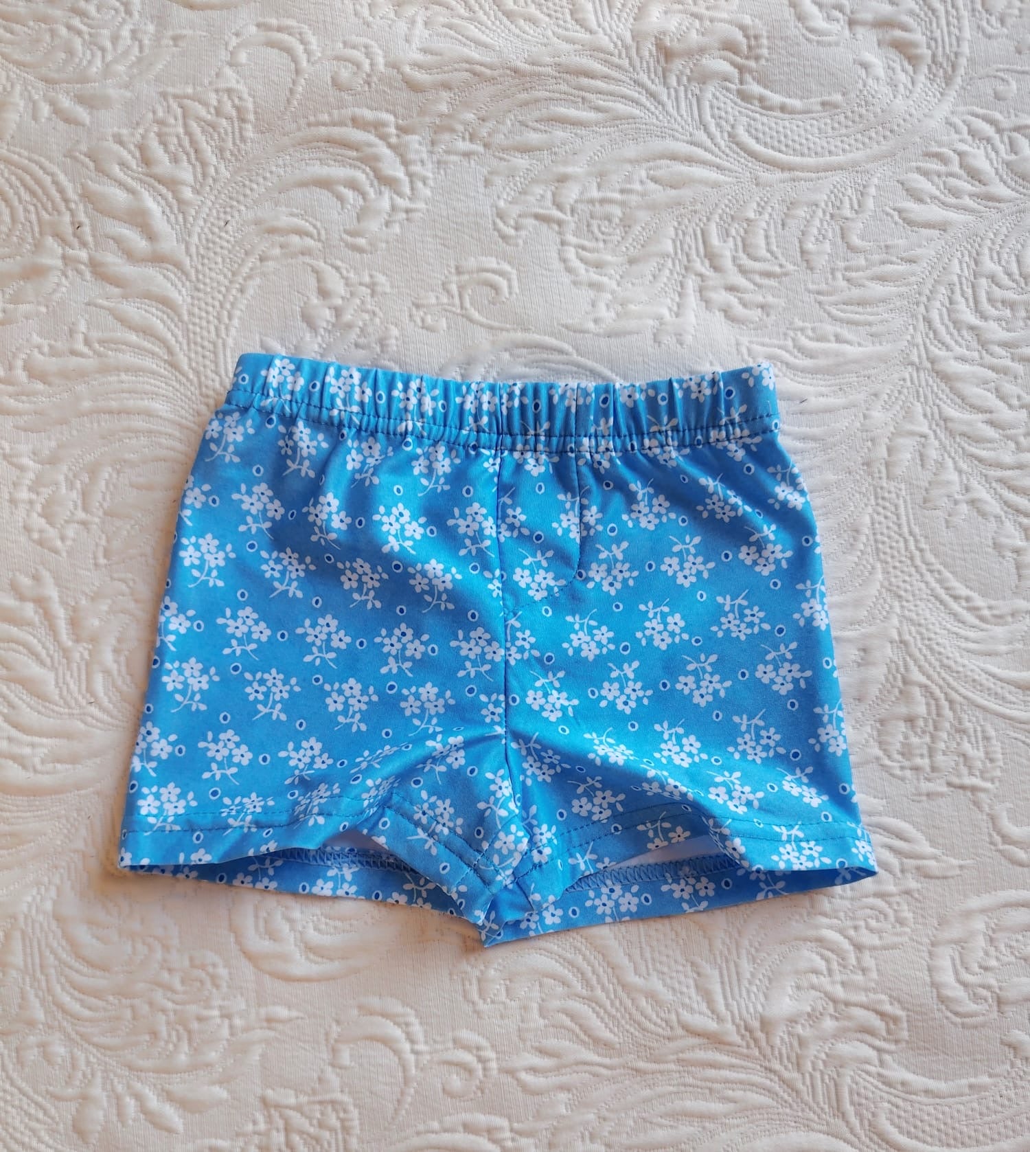 Boxer de licra estampando tonos azulón y blanco.