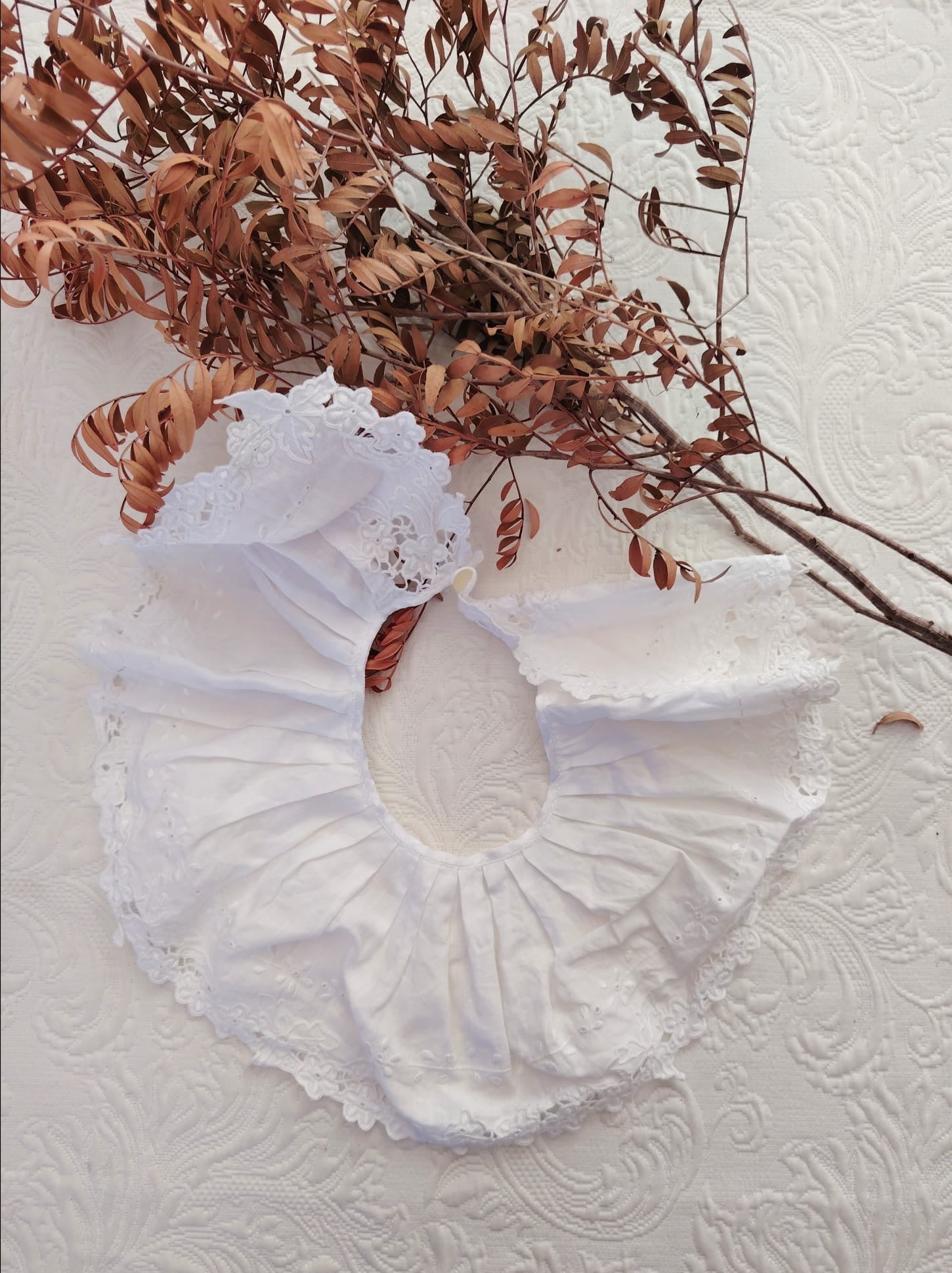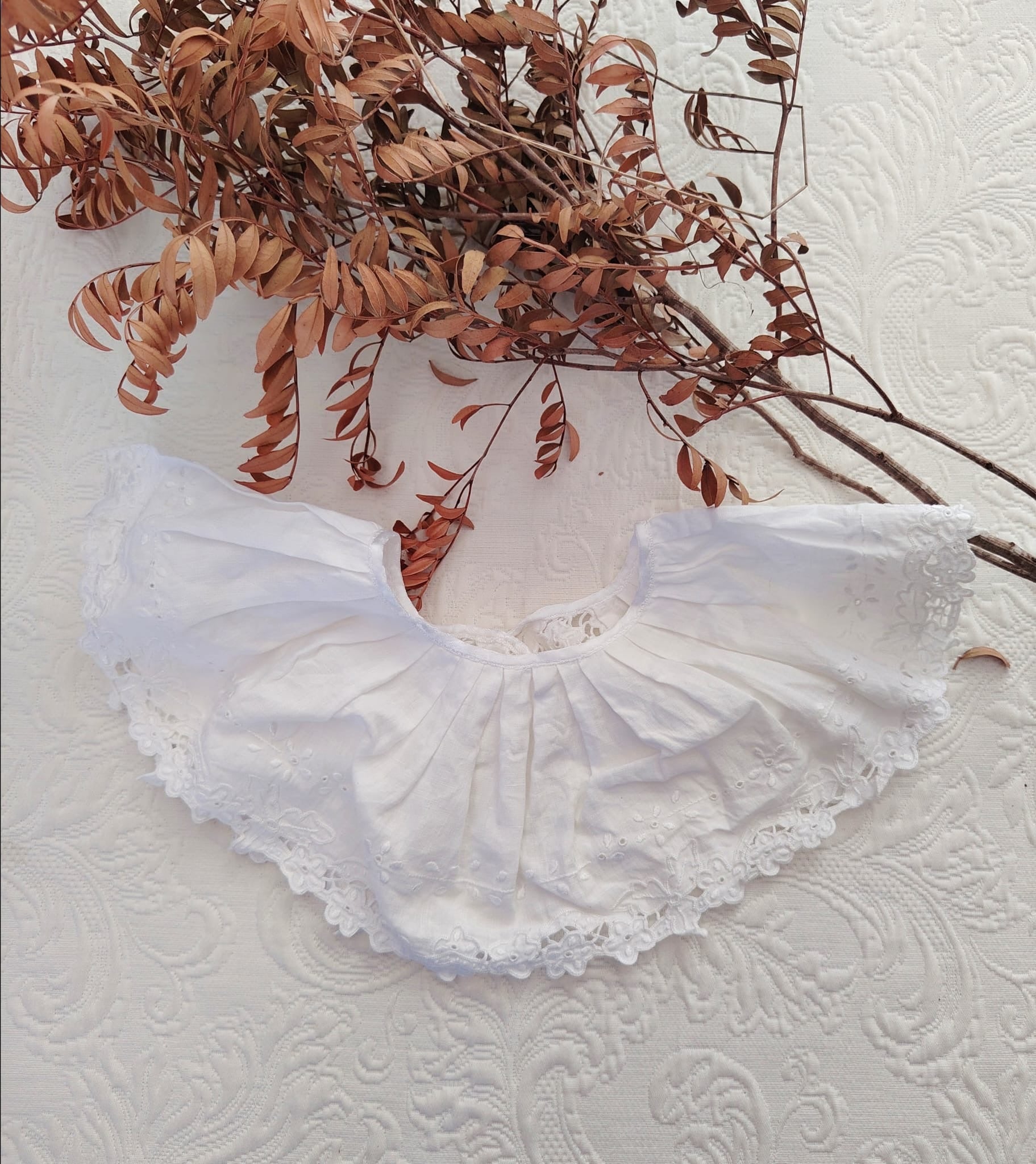 Cuello de lino antiguo bordado