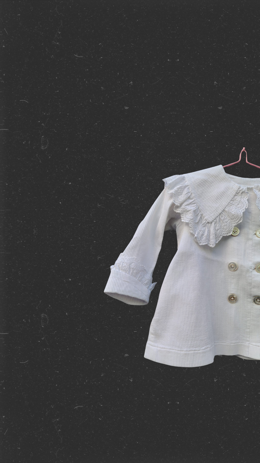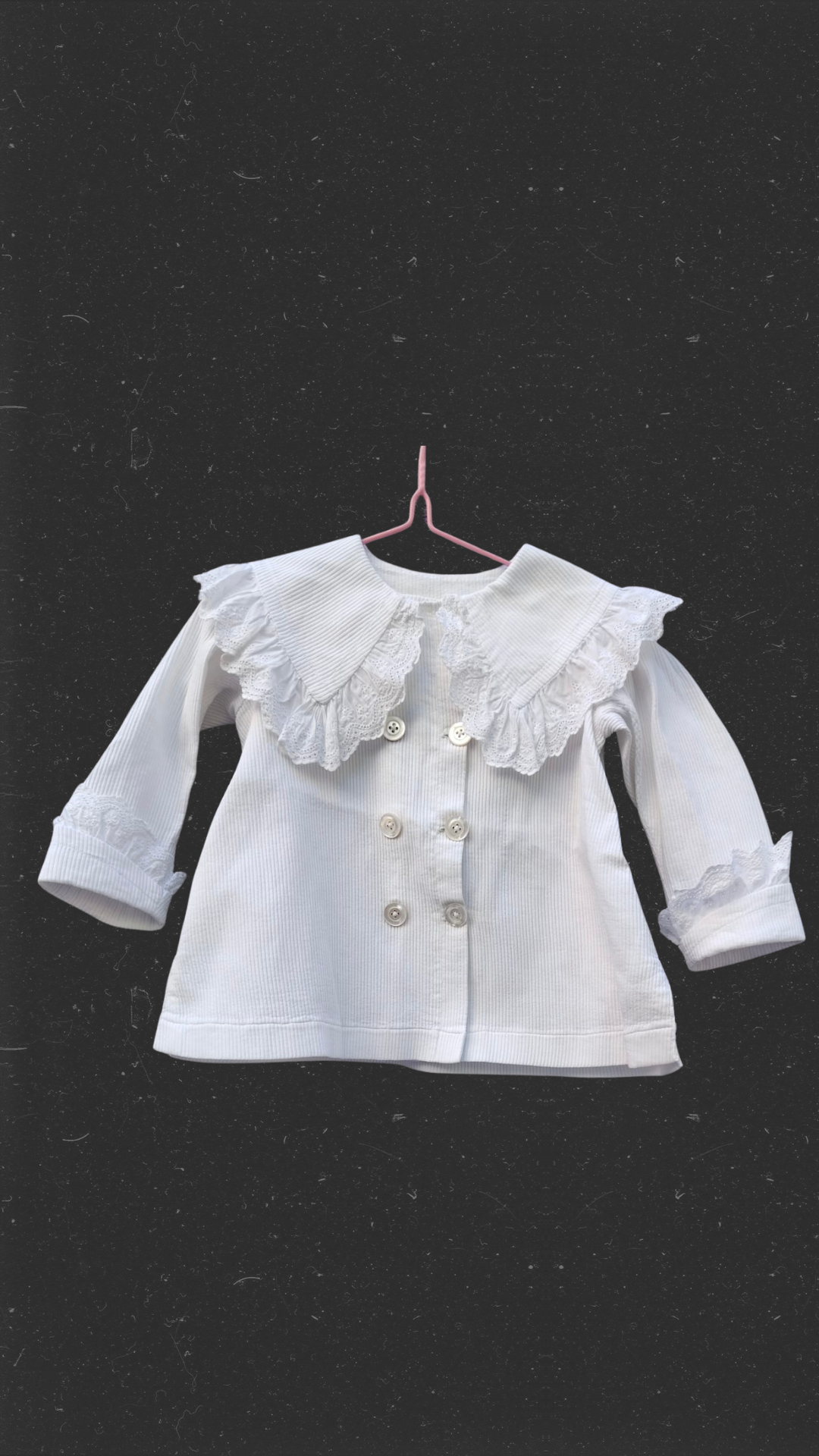 Abrigo antiguo de pique y tiras bordadas.